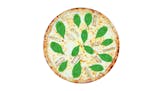Olive oil base with fresh basil, fresh garlic, mozzarella and ricotta dollops.
