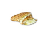 Calzone shaped Cheesy Bread with loaded Mozzarella Cheese inside & on the top, glazed with garlic sauce